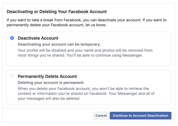 Note: After 30 days, your deactivated account will become permanently deleted.
